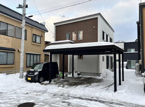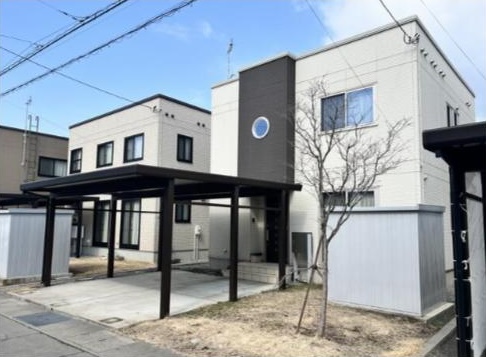 【閑静な住宅街にある4LDK中古住宅!2台分のカーポートで毎日の雪かきから解放されます。大型の物置で、散らかりやすい玄関周りもスッキリ。部屋数も多く、大人数でのご入居にぴったりです。】